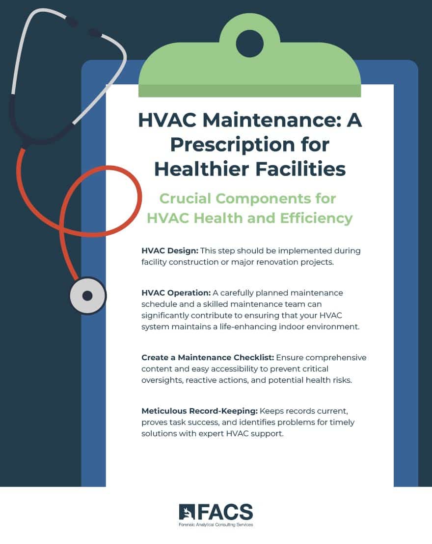 It is important to prove the steps taken — whether visual observations, airflow measurements, filter leak tests, particulate monitoring, pressure testing, airflow patterns, or any other HVAC maintenance activity — actually deliver the expected results.