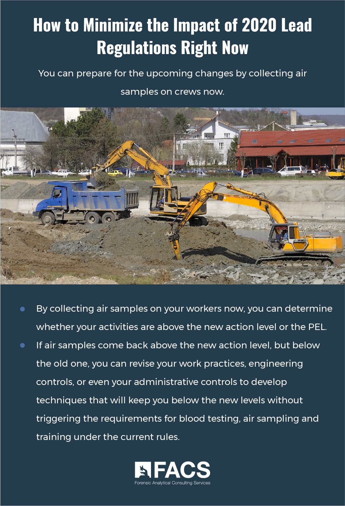- If air samples come back above the new action level, but below the old one, you can revise your work practices, engineering controls, or even your administrative controls to develop techniques that will keep you below the new levels without triggering the requirements for blood testing, air sampling and training under the current rules.
